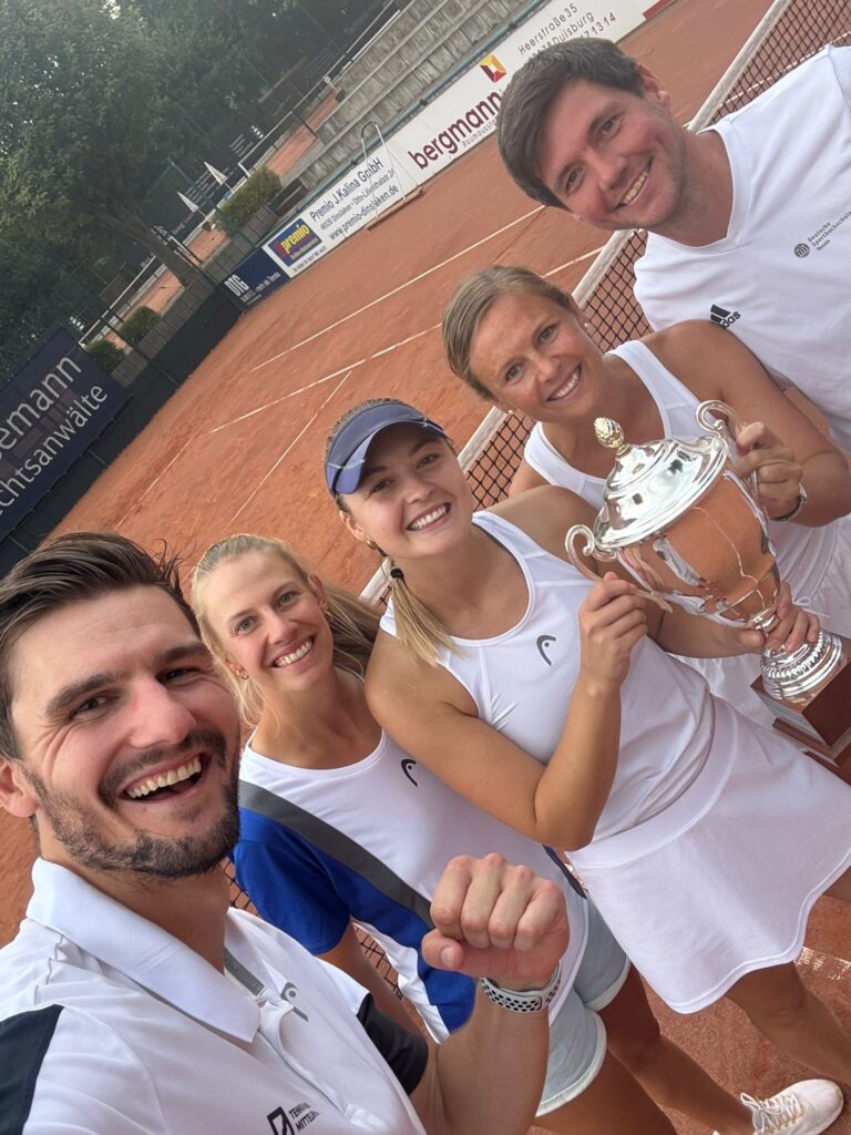 Ein ähnliches Bild zeigte sich am Sonntag im Finale. Sabine Krause erkämpfte sich nach über 2,5 Stunden mit großem Kampfgeist einen 7:5-, 4:6-, 10:7-Sieg gegen Lauren Wagenaar. Yannick machte es ihr daraufhin nach und gewann mit 6:4, 5:7 und 10:7 gegen Tom Schönenberg. Somit kam es erneut zur Entscheidung im Mixed. Hier spielten Anki und Yannick gegen Tom Schöneberg und Imke Küsgen ein überragendes Niveau und sicherten dem Tennisverband Mittelrhein den Gesamtsieg mit 6:2 und 7:6.