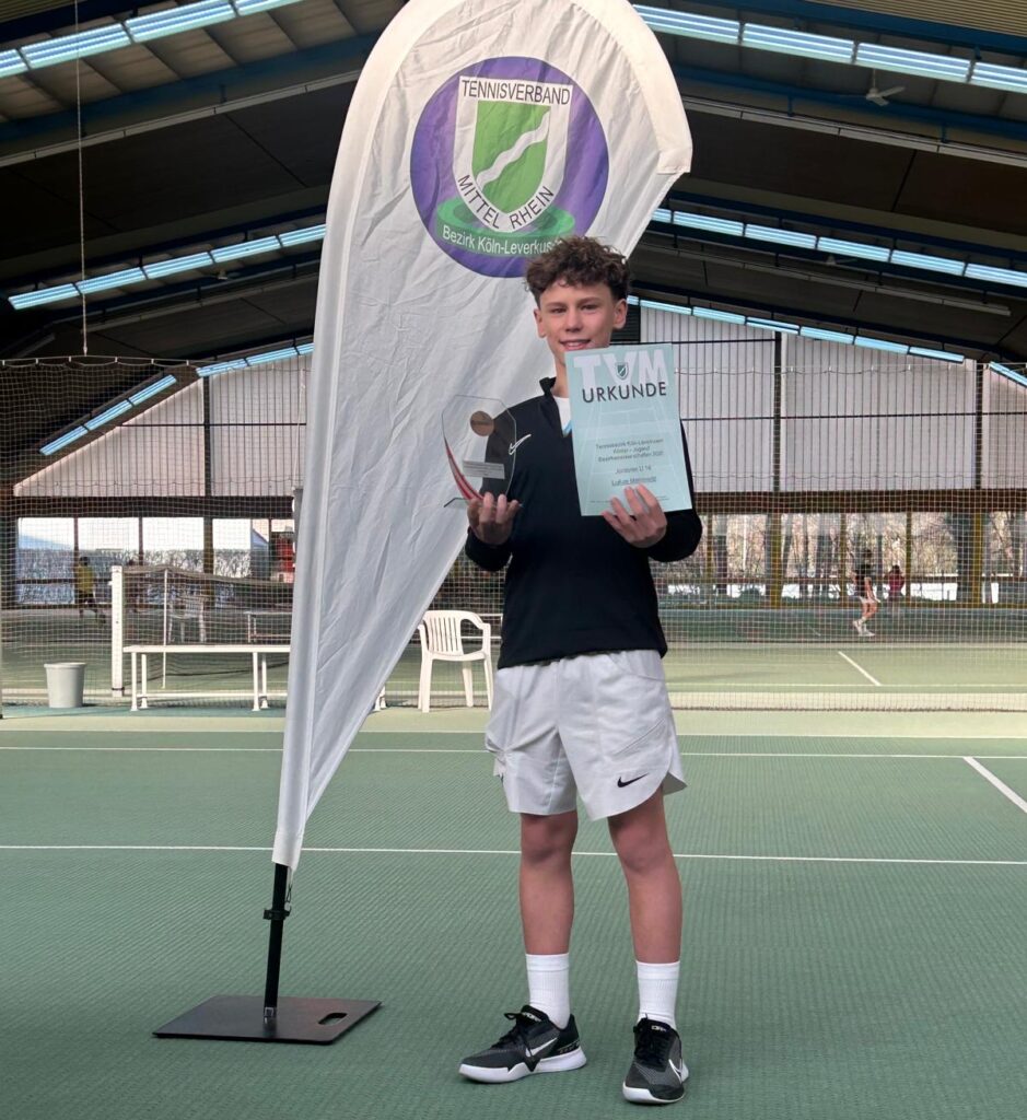 Großer Erfolg für unseren Nachwuchs bei den Jugend-Bezirksmeisterschaften Köln/Leverkusen Winter 2026: Lukas Mommertz sicherte sich in der U14 männlich als Nummer 1 gesetzter Spieler souverän den Bezirksmeistertitel und gewann das Turnier ohne Satzverlust.